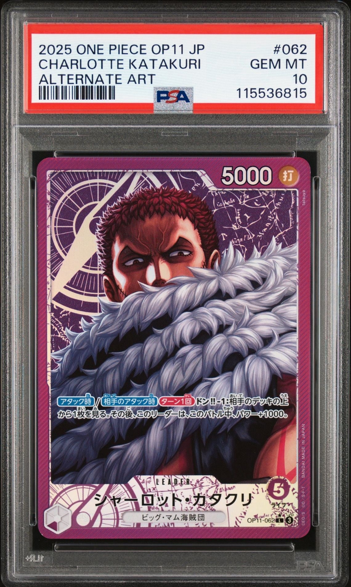 PSA 10 2025 ONE PIECE JAPANESE OP11-A FIST OF DIVINE SPEED | ALTERNATE ART CHARLOTTE KATAKURI 062