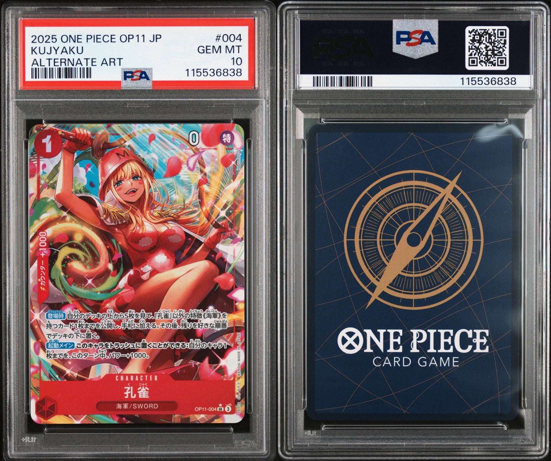 PSA 10 2025 ONE PIECE JAPANESE OP11-A FIST OF DIVINE SPEED | ALTERNATE ART KUJYAKU 004