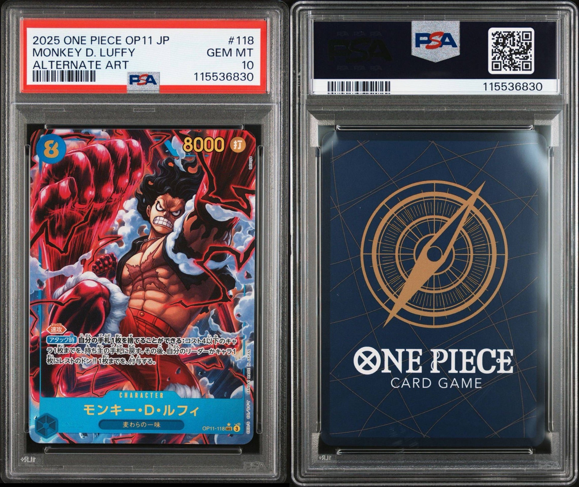 PSA 10 2025 ONE PIECE JAPANESE OP11-A FIST OF DIVINE SPEED | ALTERNATE ART MONKEY D. LUFFY 118
