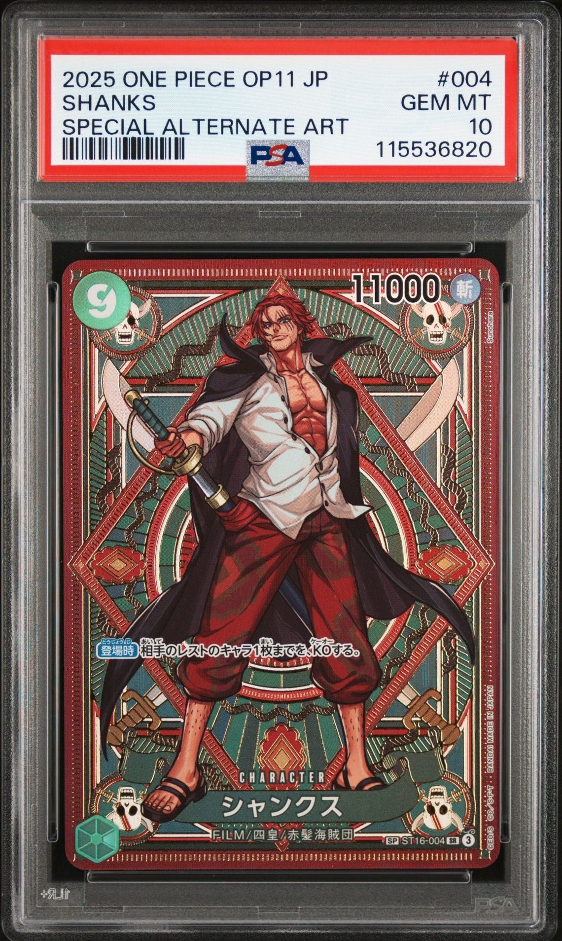PSA 10 2025 ONE PIECE JAPANESE OP11-A FIST OF DIVINE SPEED | SPECIAL ALTERNATE ART SHANKS 004