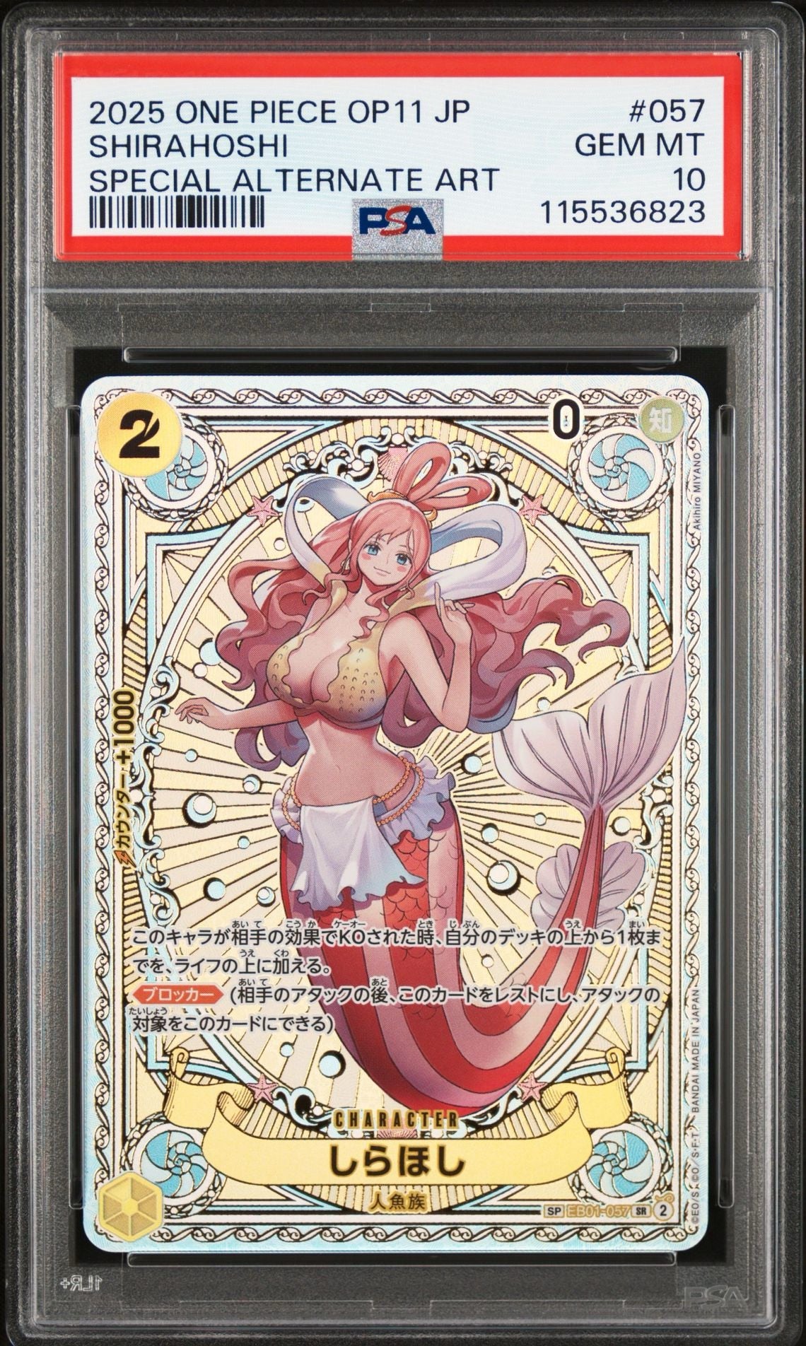 PSA 10 2025 ONE PIECE JAPANESE OP11-A FIST OF DIVINE SPEED | SPECIAL ALTERNATE ART SHIRAHOSHI 057