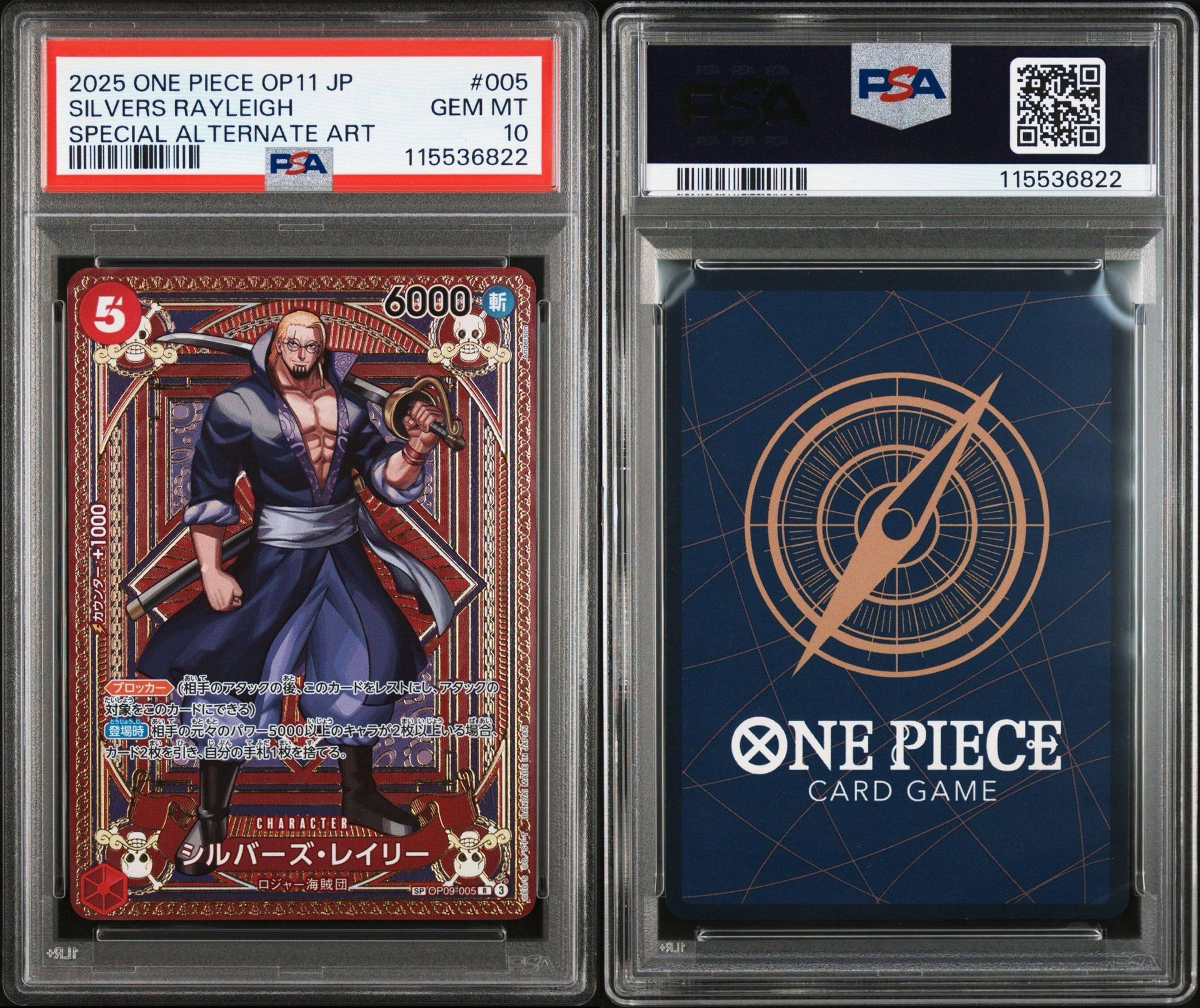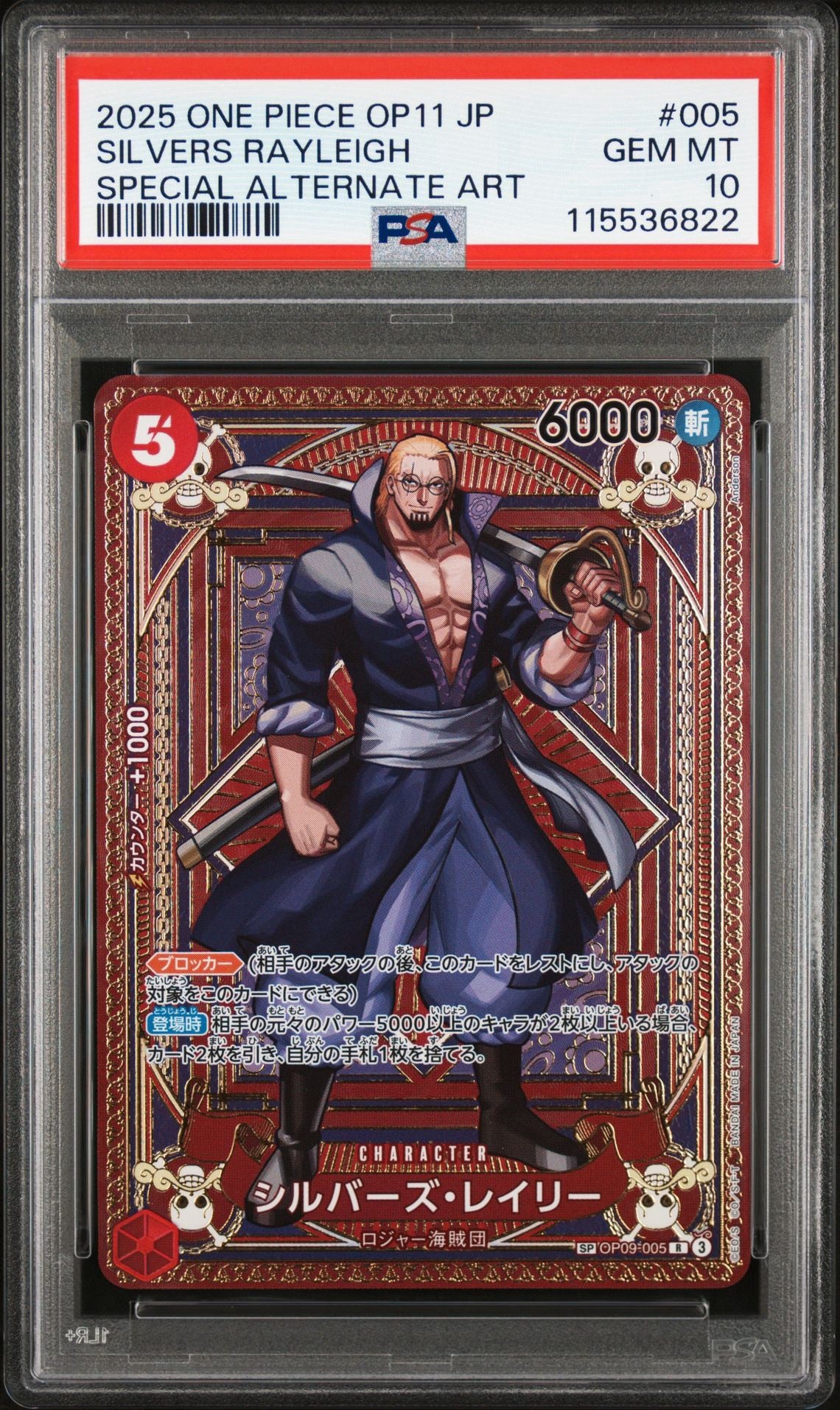 PSA 10 2025 ONE PIECE JAPANESE OP11-A FIST OF DIVINE SPEED | SPECIAL ALTERNATE ART SILVERS RAYLEIGH 005