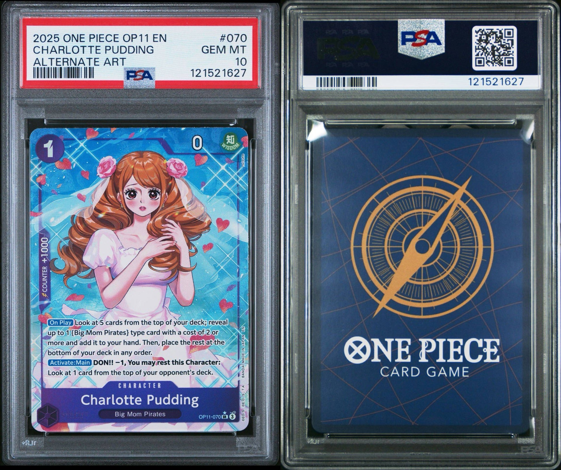PSA 10 2025 ONE PIECE OP11-A FIST OF DIVINE SPEED | ALTERNATE ART CHARLOTTE PUDDING 070