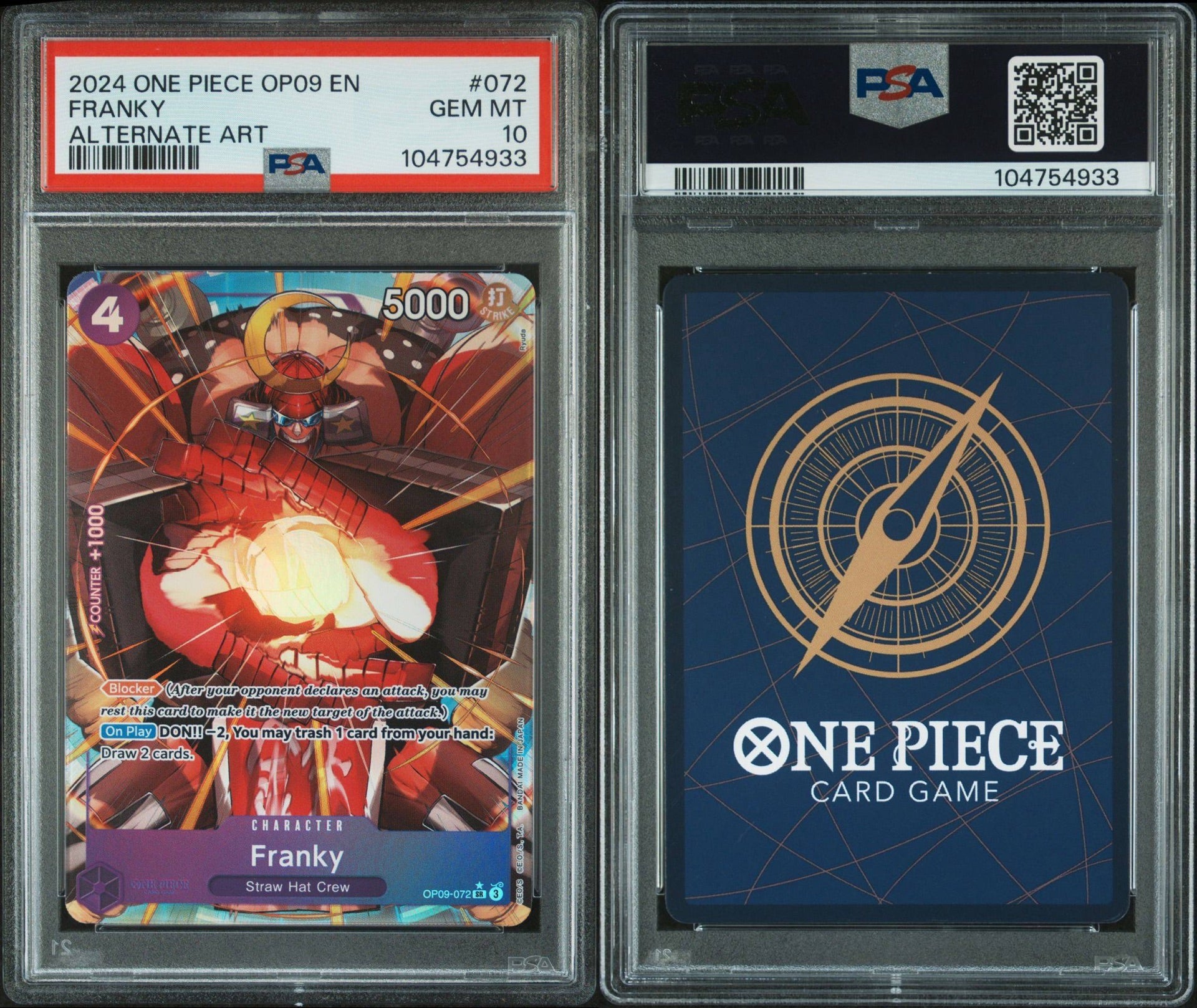 PSA 10 2024 ONE PIECE OP09-EMPERORS IN THE NEW WORLD | ALTERNATE ART 072 FRANKY
