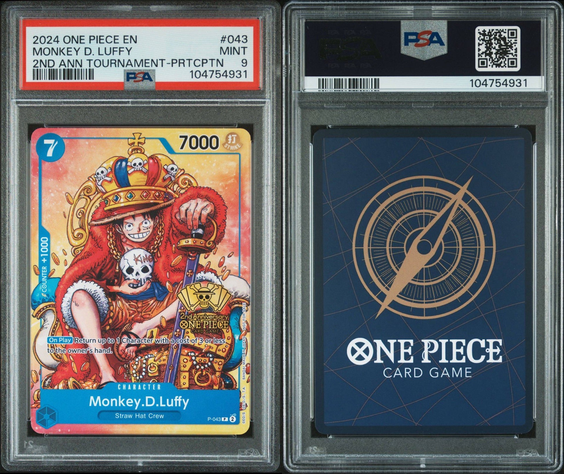PSA 9 2024 ONE PIECE PROMOS | 2ND ANNIVERSARY TOURNAMENT-PARTICIPATION 043 MONKEY D. LUFFY