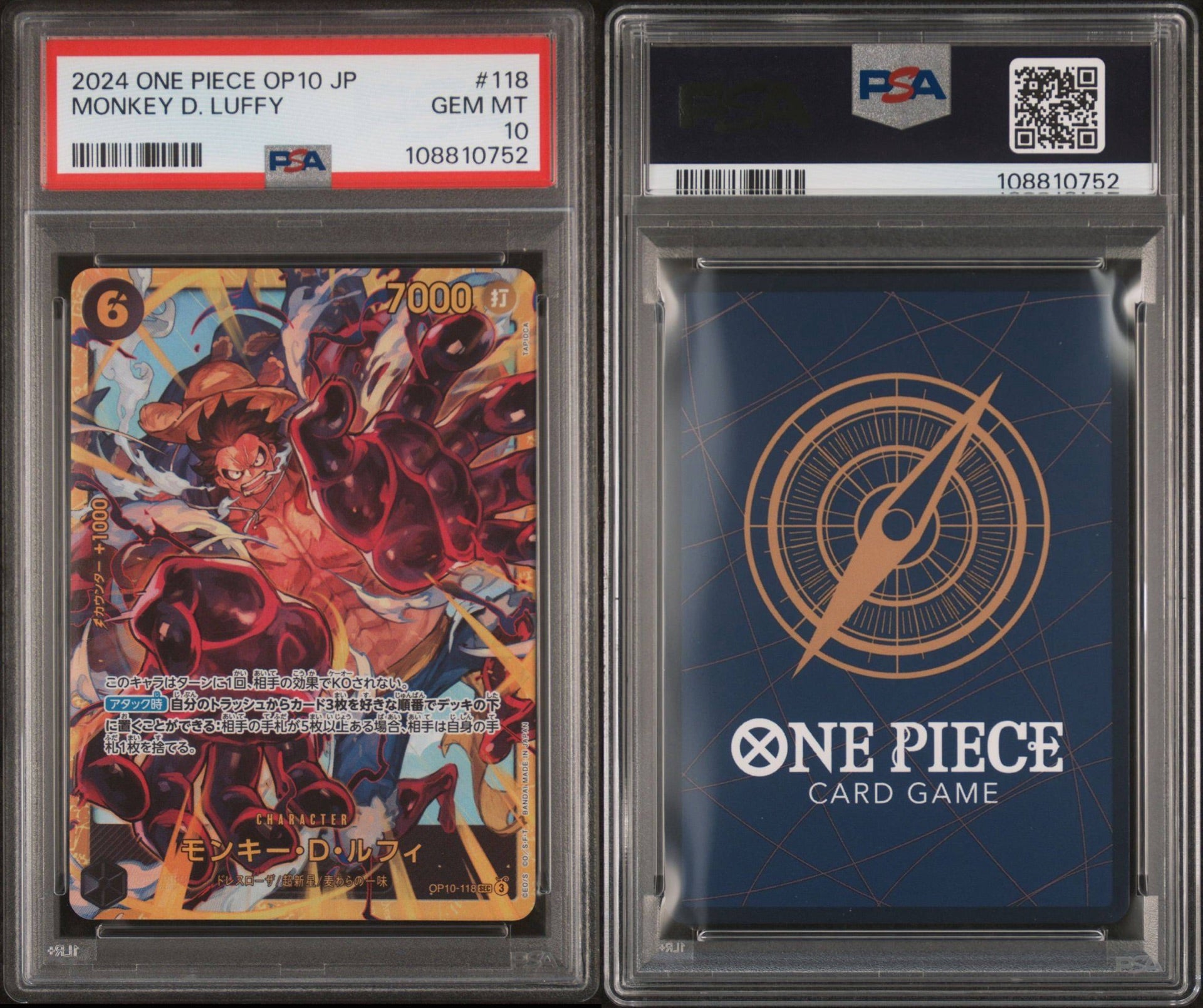 PSA10 2024 ONE PIECE JAPANESE OP10-ROYAL BLOOD MONKEY D. LUFFY 118
